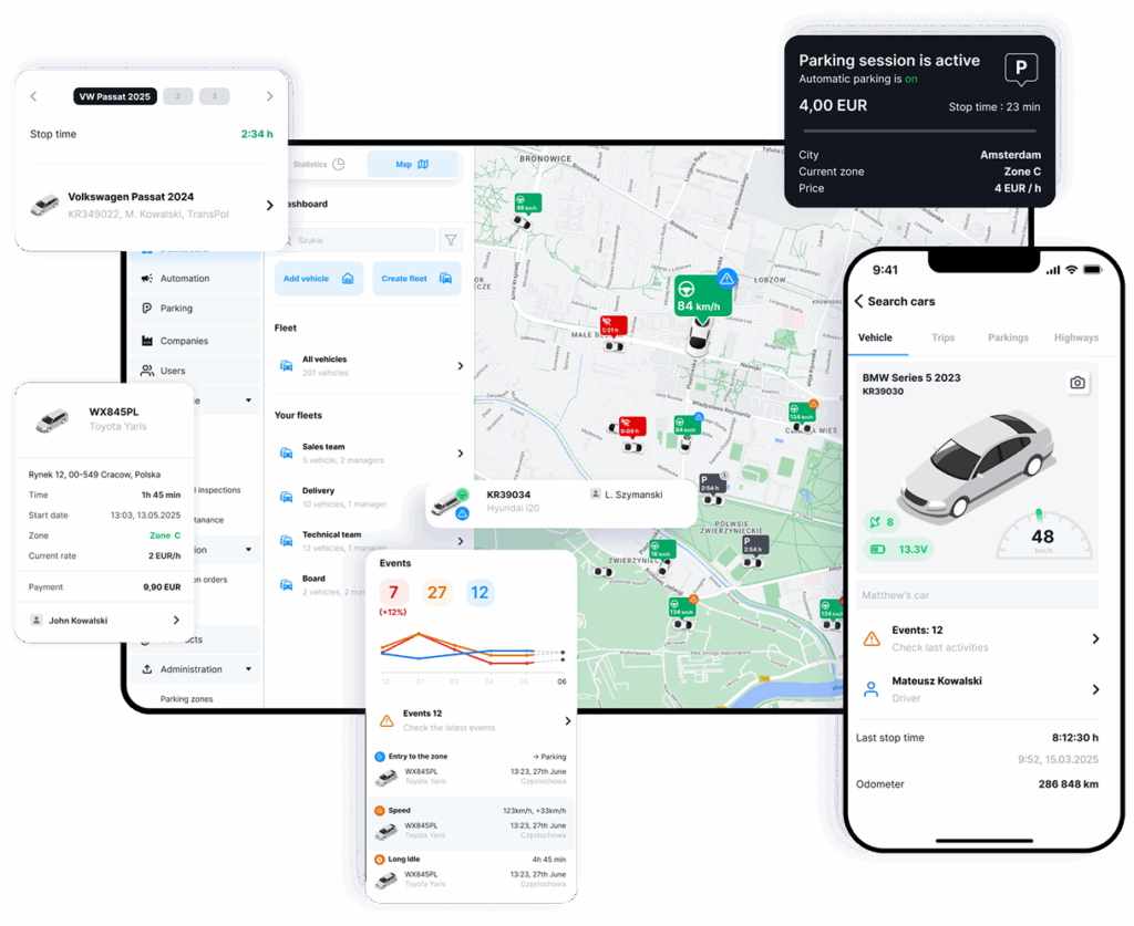 GPS, carsharing, cost control, and compliance – all in one system. No more juggling five different apps to manage your fleet